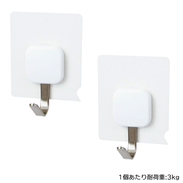 しっかり貼れてきれいにはがせる強力吸着シートフック2個入。