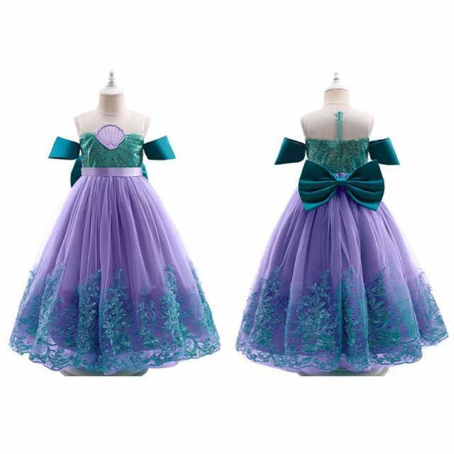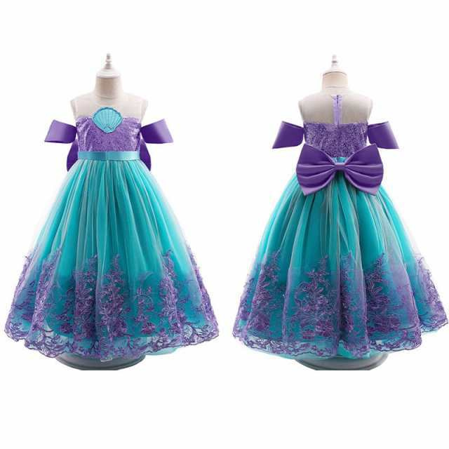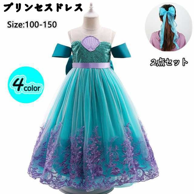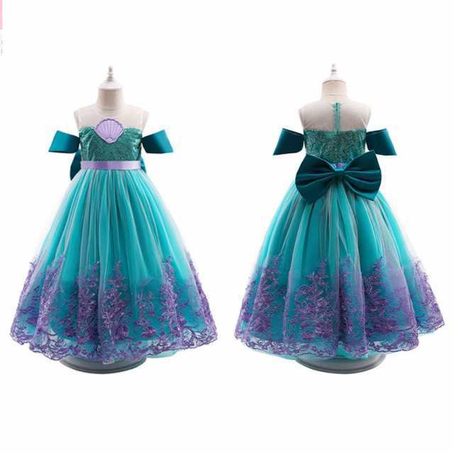 子供服 プリンセスドレス 人魚姫 リトルマーメイド アリエル 風 コスチューム ドレス 2点セット キッズ ハロウィン 仮装 発表会 演出