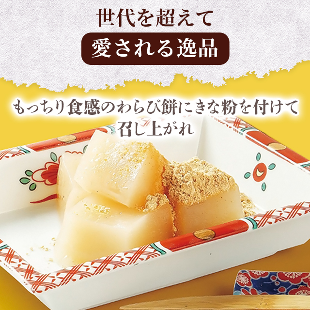 ・本わらび粉と厳選国産食材を使用し、職人が丹精込めて練り上げたわらび餅。