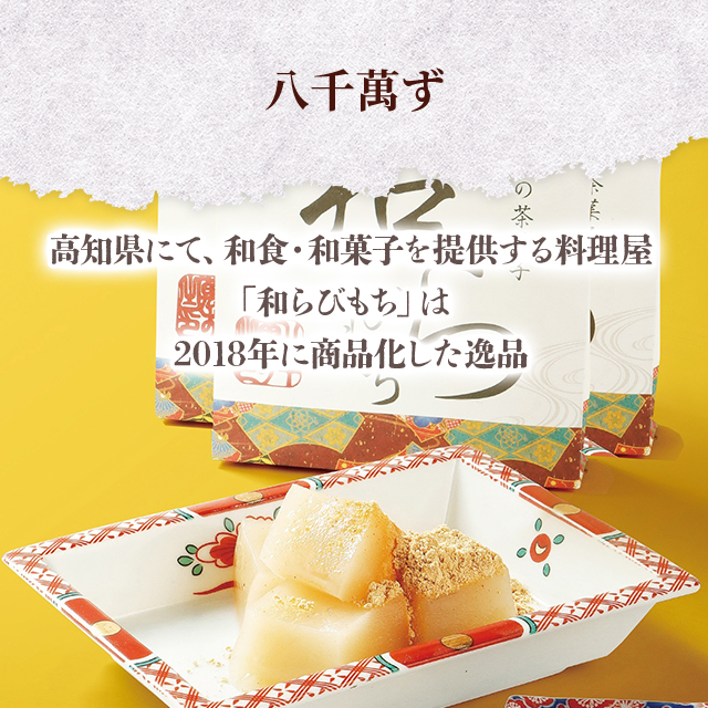 ・高知県の料理屋「八千萬ず」から、自慢の茶菓子「和らびもち」をご紹介。