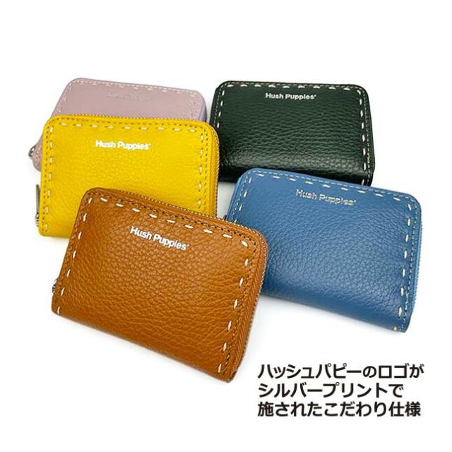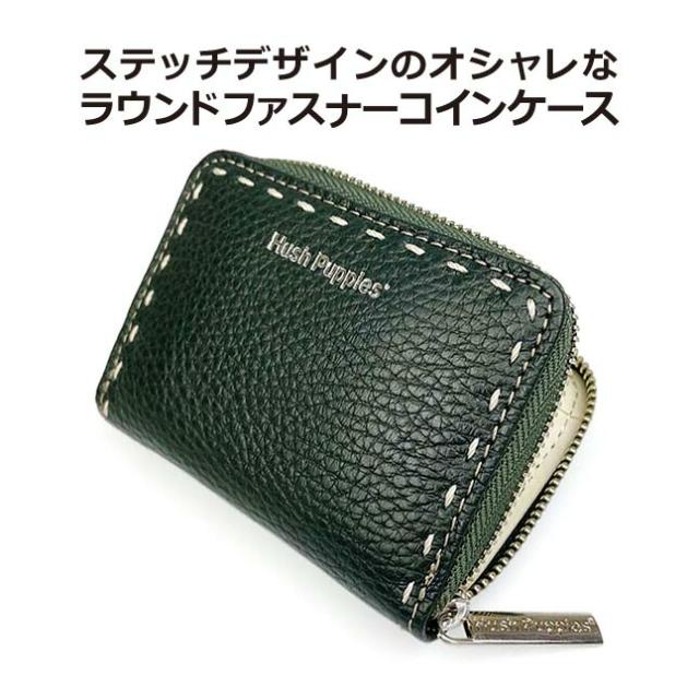 コインケース レディース ブランド【hp3061】Hush Puppies ハッシュパピー ラウンドファスナーコインケース 小銭入れ ミニ財布 ファスナー財布 牛革 本革 コンパクト ステッチデザイン 男女兼用 通勤 旅行 お買い物 ショッピング おしゃれ 便利
