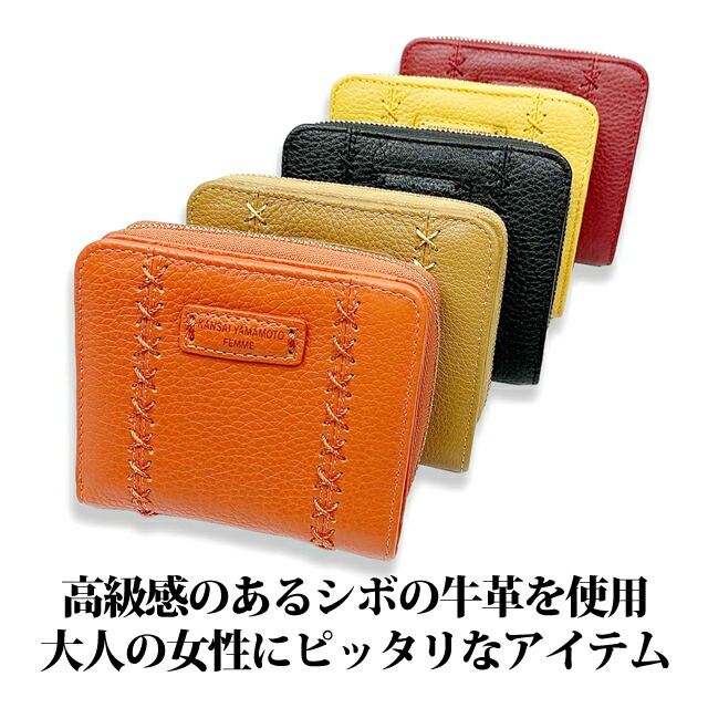 二つ折り財布 レディース ブランド【mj4503】YAMAMOTO KANSAI ヤマモトカンサイ ソフト牛革 二つ折り財布 折り財布 ラウンドファスナー小銭入れ付き おしゃれ 使いやすい 女性 レディース 母 祖母 旅行 お買い物 ショッピング お出かけ 通勤 春財布