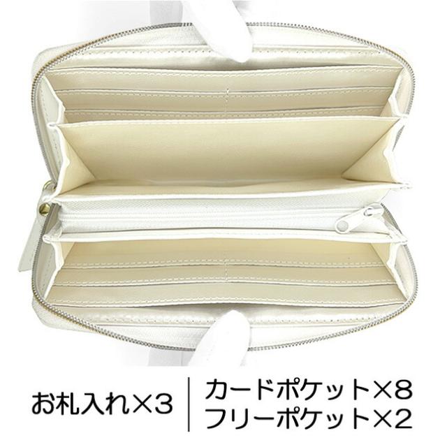 | ハートとパールのブローチがおしゃれな大人可愛いラウンドファスナー長財布。 ラウンドファスナーで大きく開いて中身が見やすく、カードもコインも出し入れしやすい大容量サイズ。 ポケットもたくさんあって、収納力抜群! プレゼントにもおすすめです♪ | |||