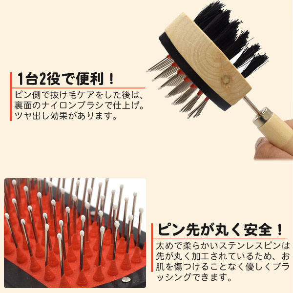 ペット用ブラシ ソフトタイプ 1台2役 ピンブラシ ナイロンブラシ ムダ毛 抜け毛 アンダーコート お手入れ 毛並み ツヤ出し ブラッシング ペット用 ブラシ ペット用品 トリミング 猫 犬 小動物 毛玉飲み込み予防 対策 グルーミング トリミング 換毛期 ケアグッズ ペットグッズ