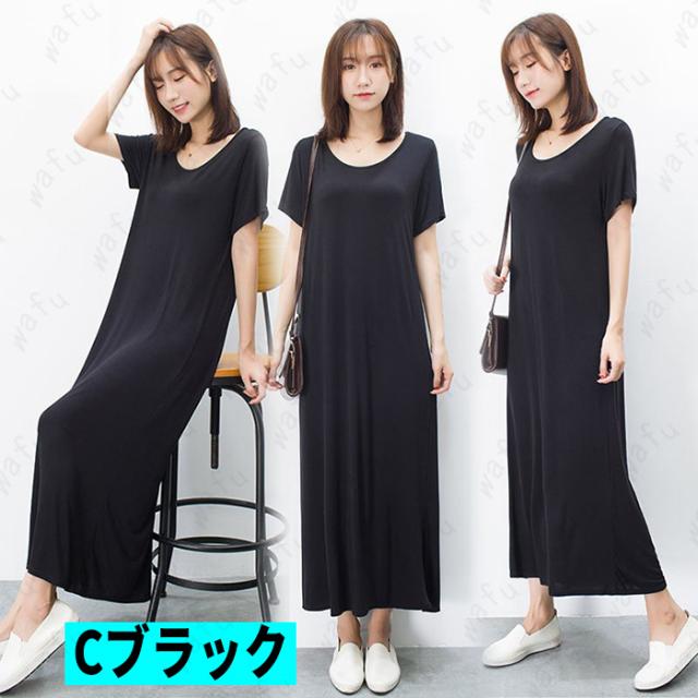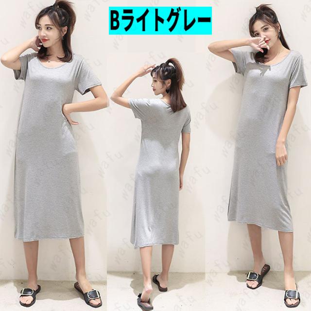 3type (#FW79) 半袖無地 ミニワンピース ロングワンピース大きいサイズ 膝ワンピース ミニワンピースレディース 伸縮性あり