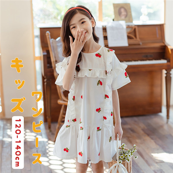 フリル 子供ワンピース 女の子 花柄 刺繍 キッズワンピース 夏ワンピ 半袖 韓国 子供服 通園 通学 コットン かわいい 子ども 子供服 結婚式 姫系 お洒落 ガールズ プリンセス 七五三 卒業式 プリンセスドレス