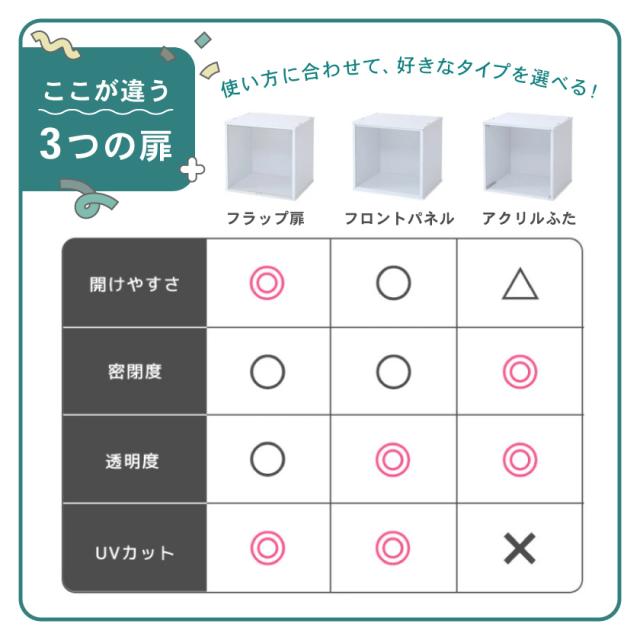 コーナー天板付き キューブボックスα 棚なし 透明扉付き フラップ扉 アクリル蓋 フロントパネル