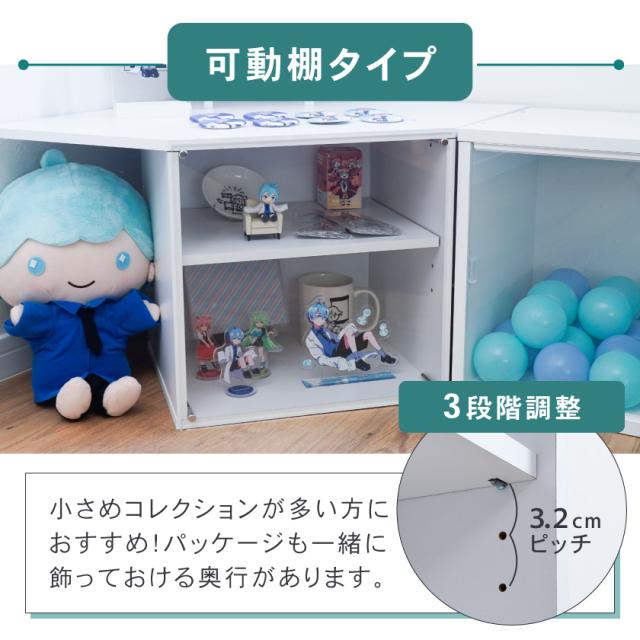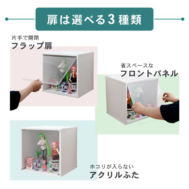コーナー天板付き キューブボックスα 可動棚付き 透明扉付き フラップ扉 アクリル蓋 フロントパネル