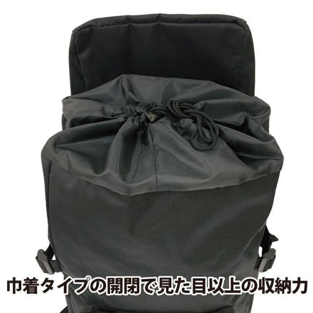 | 仕 様 | | | マチ付きフロントファスナーポケット×1 メインルームは外側かぶせ付きバックル仕様 かぶせの中は巾着仕様 両サイドにオープンポケット 背面ミニファスナーポケット×1 メイン内PC収納可能ポケット×1 メインルーム直結背面ファスナー付き ショルダーベルト長さ調節可能 | |