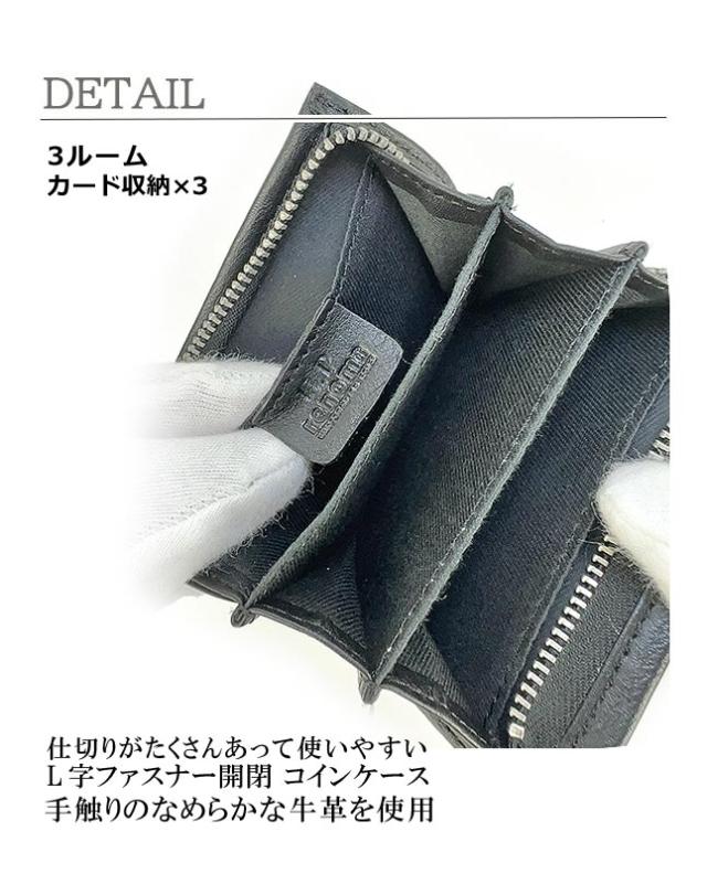 | 仕切りがたくさんあって使いやすいL字ファスナー開閉のコインケース。 手触りのなめらかな牛革を使用。フロントのステッチとロゴの型押しがデザインのポイント。 専用の化粧箱に入れてお届けします。プレゼントにも最適です。 | |||