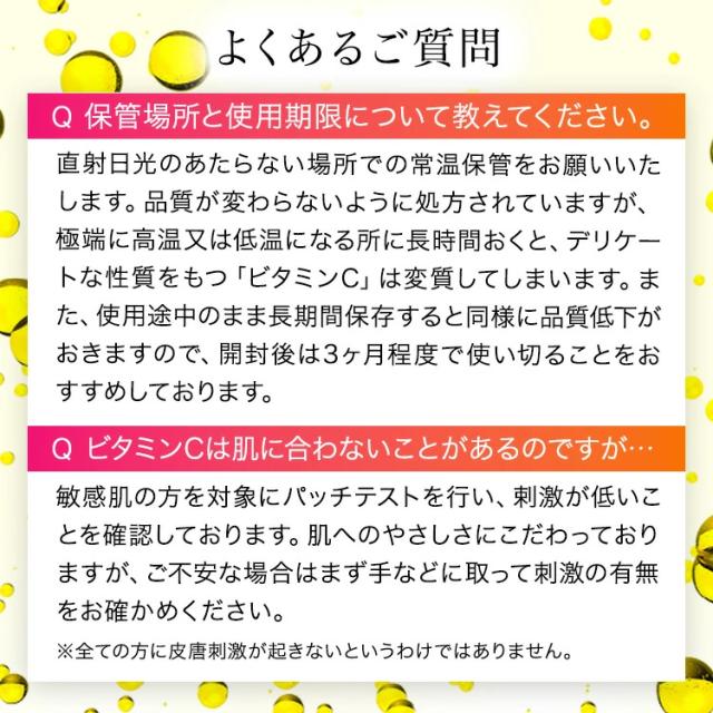 | ご使用方法 | 朝・晩、洗顔後にご使用ください。 1回の使用目安は2〜3滴を手のひらに取り出します。 顔の内側から外側に向かってやさしく押し込むように浸透させてください。 |