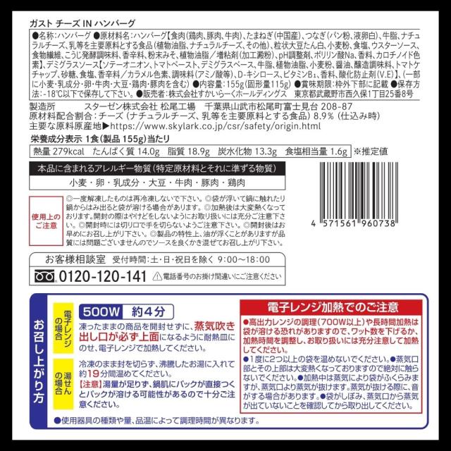 【商品内容】 ガスト チーズINハンバーグ 155g×10袋