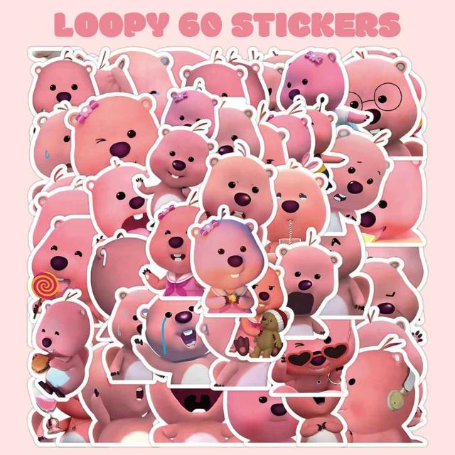 LOOPY ルーピー ステッカー 60枚セット ポンポンポロロ 韓国 雑貨 防水 シール 動物 ビーバー かわいい おしゃれ ピンク キャラクター
