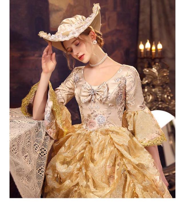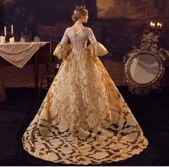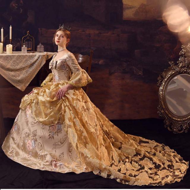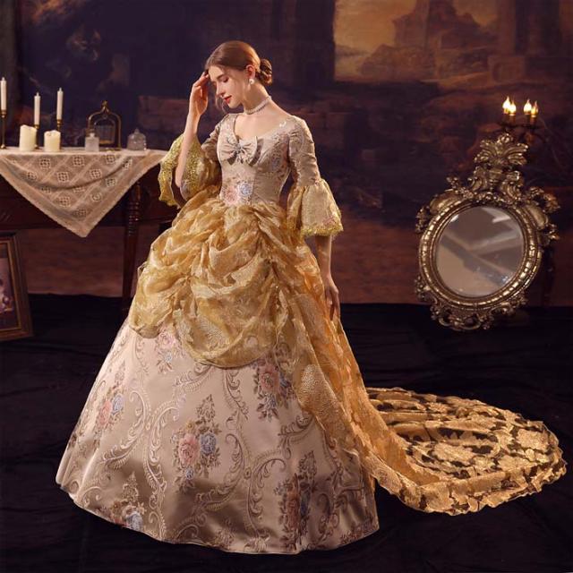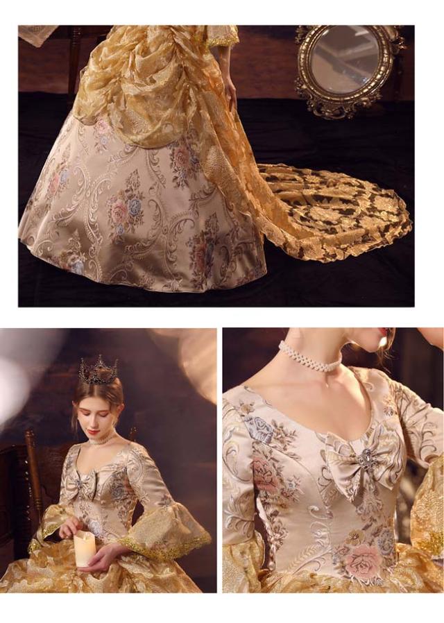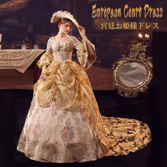 華麗な 宮廷ドレス お姫様ドレス レディース タキシード ロングドレス ロココ 貴族ドレス 18世紀 ジャガード織 シャンパン 中世ヨーロッパ お姫様 プリンセスドレス サイズ指定OK 西洋ドレス ステージ衣装 貴婦人 オペラ ワンピース d9462c0c0zr