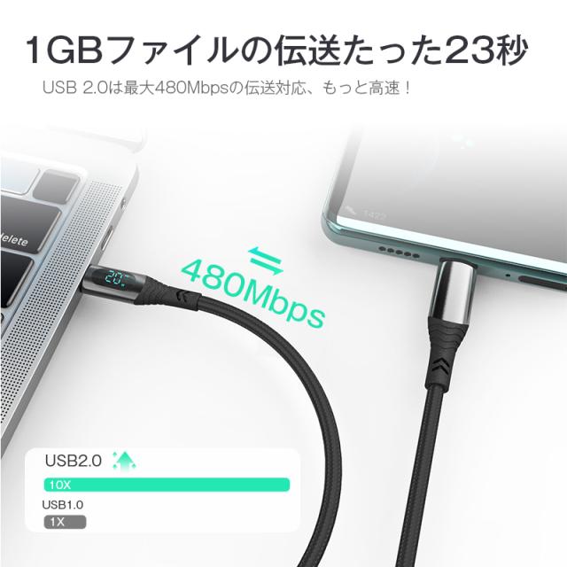 メリット1:次世代の転送規格2.0に対応!速度は最大480Mbpsとなっています。超高速データ転送が可能に。