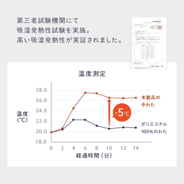 【吸湿発熱:汗などの水分が繊維に吸着することで発熱する】機能付きの中わたを使用!