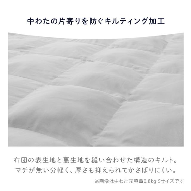 あたたかい眠りをサポートする、人工羽毛を使用した掛け布団“ダブルサイズ(約190×210cm)”の中わた増量タイプ。