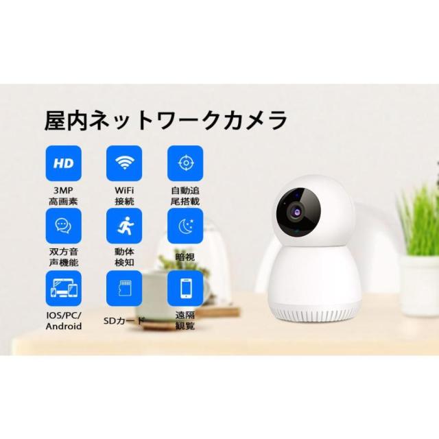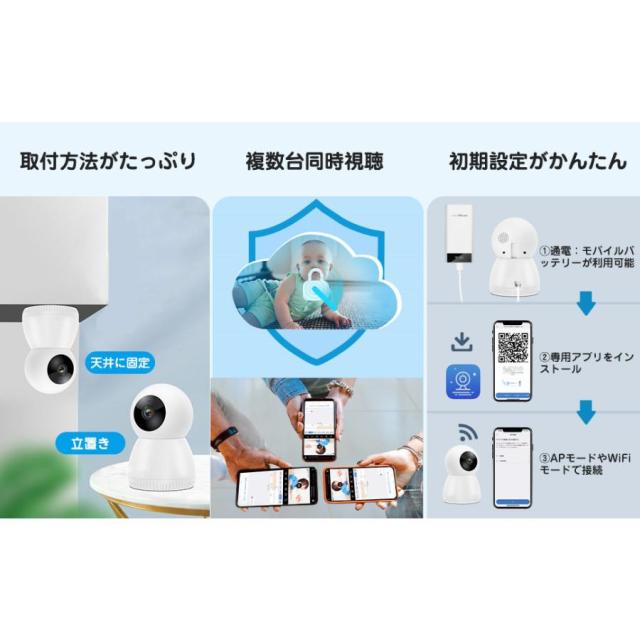 2台 防犯カメラ WiFi 屋内 ワイヤレス ネットワークカメラ IPカメラ PTZ 300万 屋内 カメラ 暗視撮影 双方向音声 動体検知 家庭監視 ベビー ペット 高齢者見守り