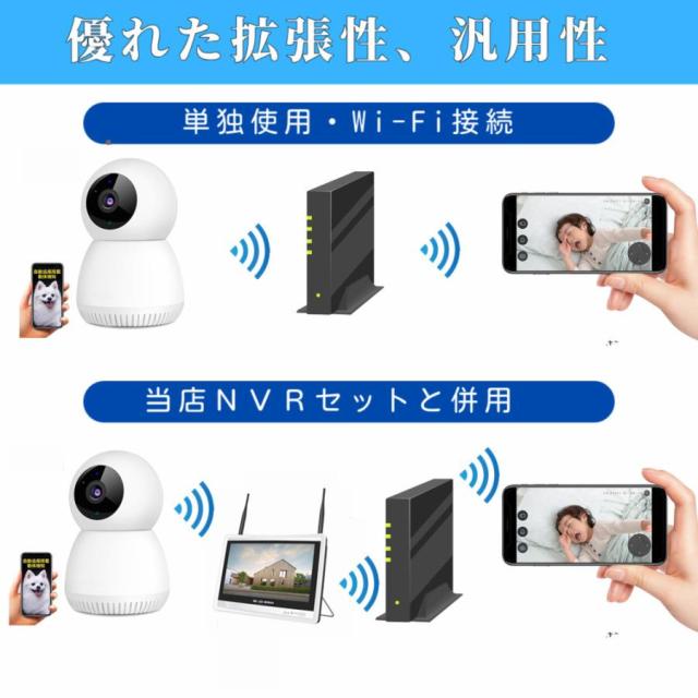 【当店のNVRなら増設可能】ワイヤレス防犯カメラシステムに増設できます。wifi ipカメラは2.4 Ghz WiFiに対応しております。5 GHz WiFiはサポートされていません。録画用のSDカードは最大128 Gに対応しています。
