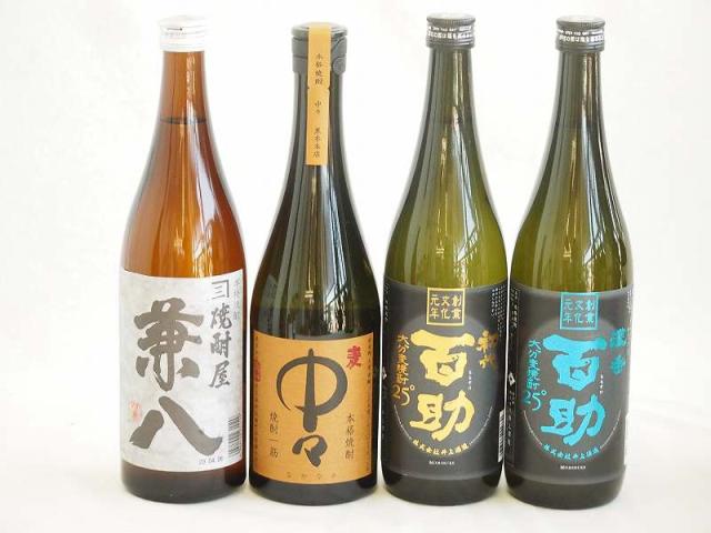 旨味がぎっしり詰まった本格麦焼酎お楽しみ4本セット(大分麦 初代百助25度 大分麦 濃香百助25度 兼八25度 本格麦 中々25度) 720ml×4本