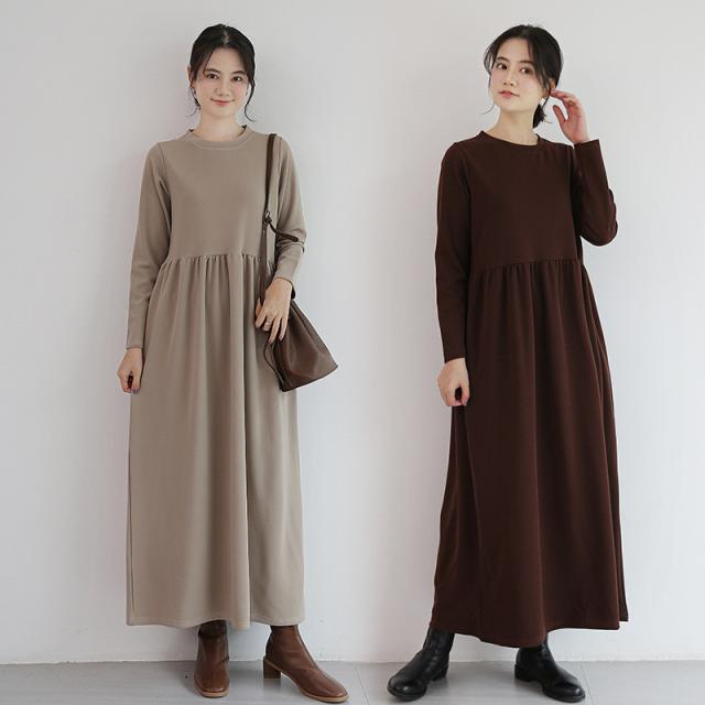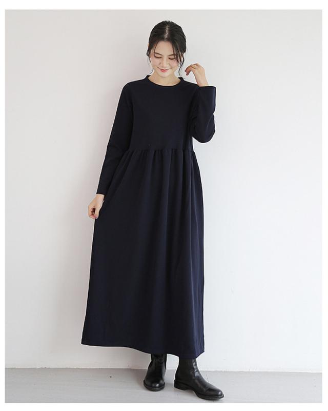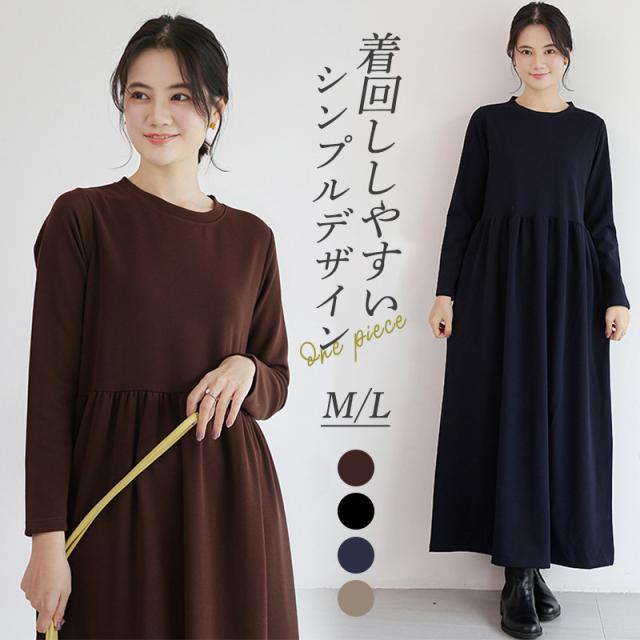 ワンピース レディース 長袖 ロング丈 マキンピ マタニティ 無地 シンプル 産後 妊婦 大人 カジュアル ゆったり 着痩せ