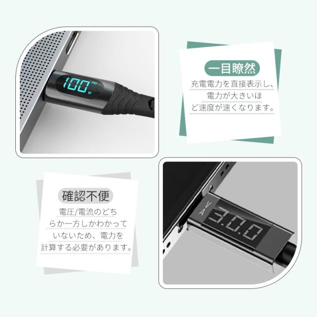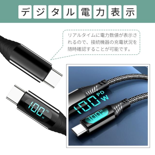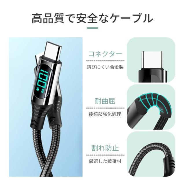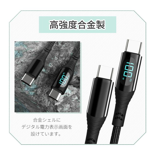 Type-C to Type-Cケーブル iPhone17 耐摩擦 2m 合金ヘッド iPhone16/15 Air 17Pro 17ProMax デジタル電力表示機能 時短充電 Android Galaxy Xperia AQUOS HUAWEIケーブル 【PL保険加入済み製品・安心】