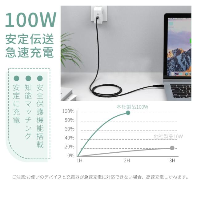 2.USB Power Delivery対応。最大100Wの電力供給で充電時間の短縮が可能です。