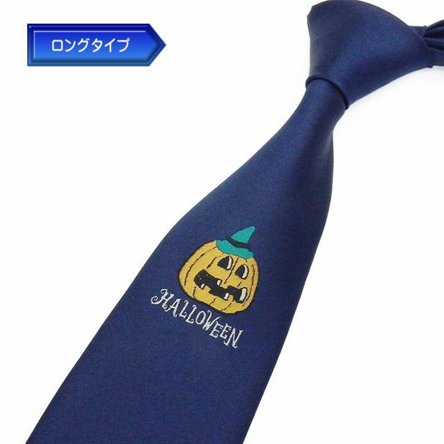 日本製ネクタイ ロングタイプ ハロウィン 青紺/胸ポイント 甲州織 洗濯機OK メール便OK EVT09-BL-LONG