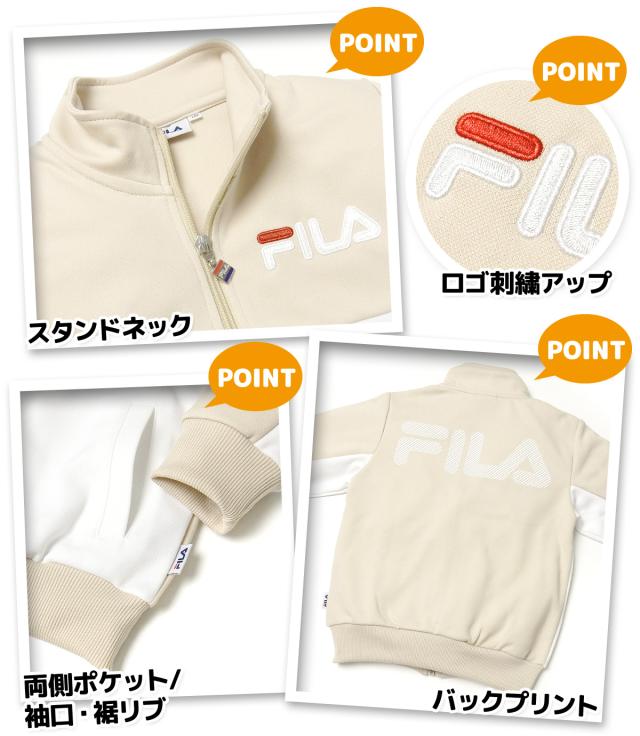 【送料無料】女児 キッズ FILA 長袖 ウォームアップスーツ 上下組 ジャージ 配色切替 ロゴ 子供服 女の子 iw-0905a-be
