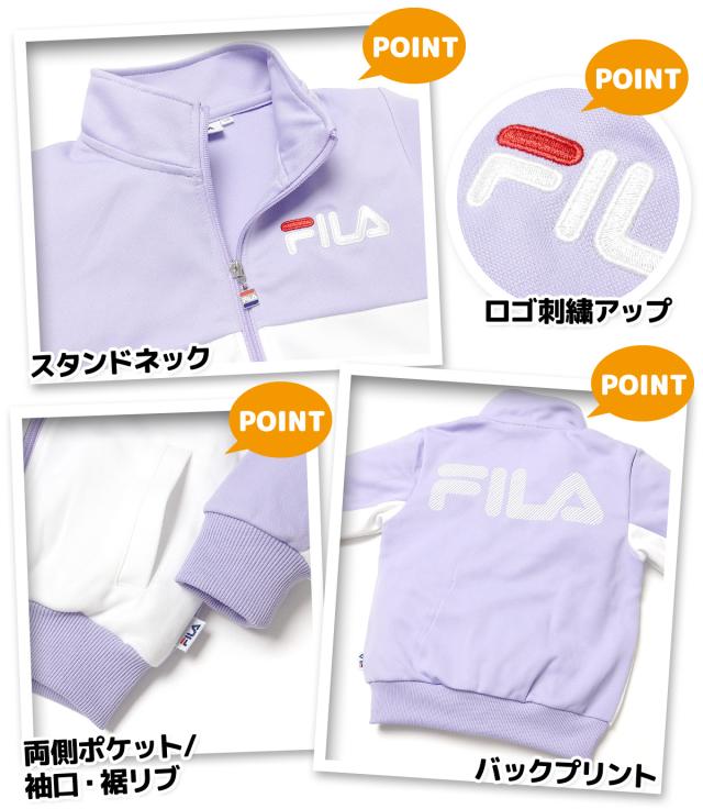 【送料無料】女児 キッズ FILA 長袖 ウォームアップスーツ 上下組 ジャージ 配色切替 ロゴ 子供服 女の子 iw-0905b-pp