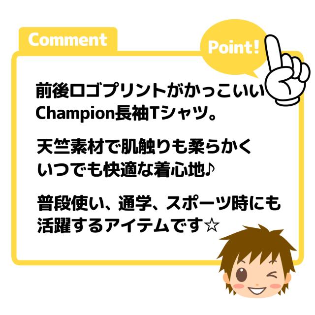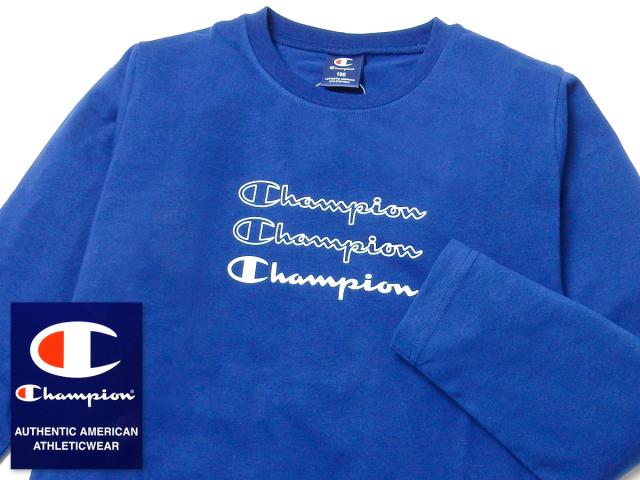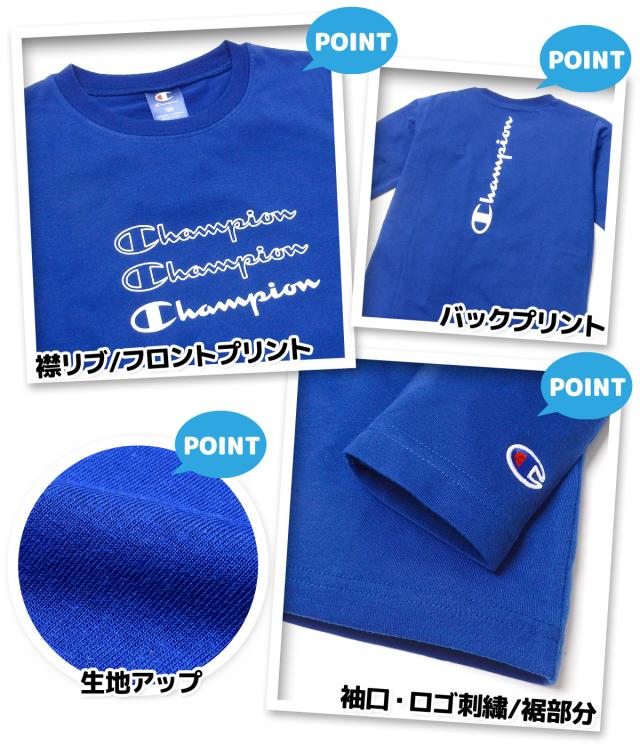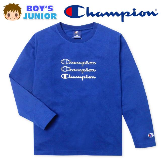 【送料無料】男児 ジュニア 天竺 長袖 Tシャツ Champion プリント 刺繍 綿混 子供服 男の子 td-0669b-bl【メール便対応】