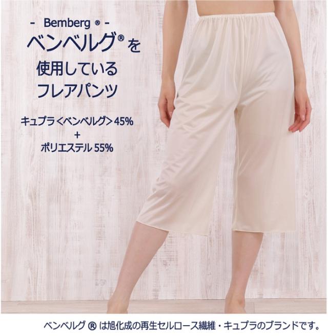 静電気防止 キュプラ混 べたつき防止 ロングフレアパンツ 日本製 60丈/70丈/75丈/80丈 ペチパンツ【 夏 涼しい ペチコート キュロットパンツ ペチコートパンツ ペチパンツ 浴衣 着物 股ずれ防止】