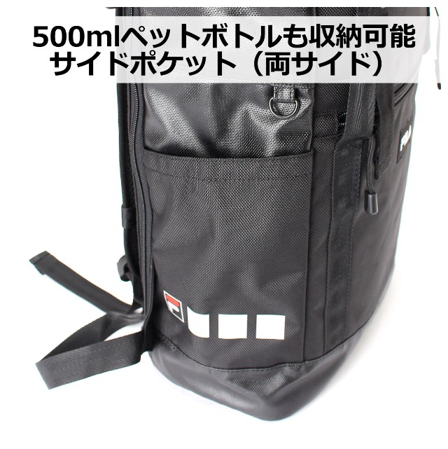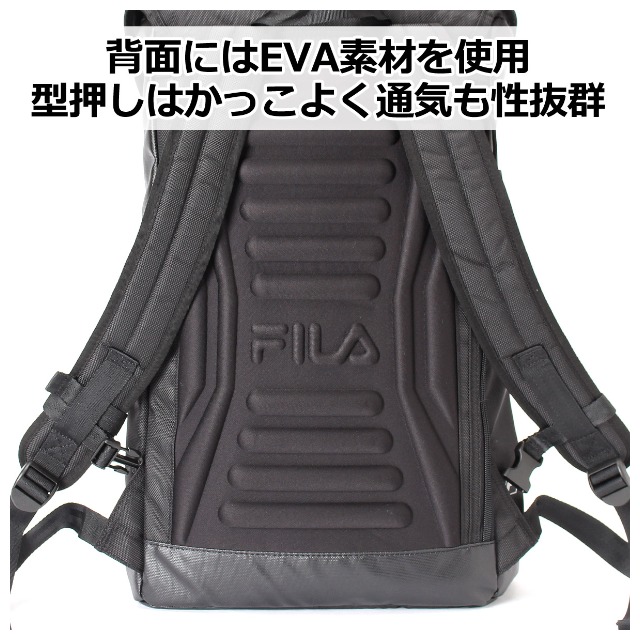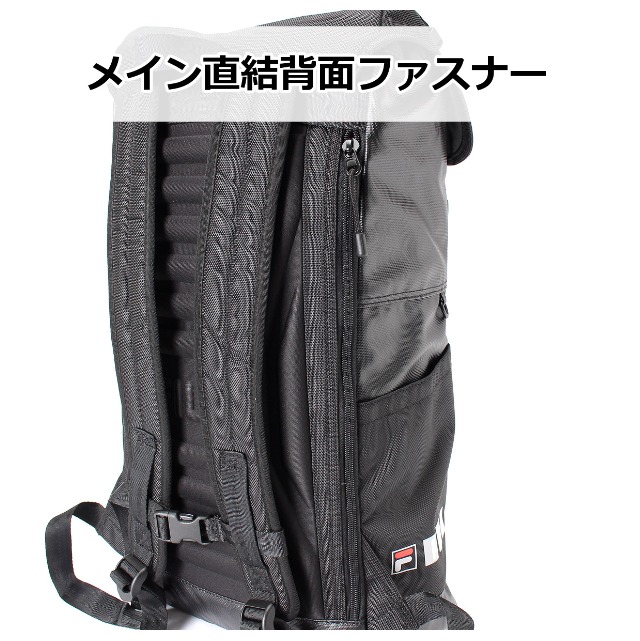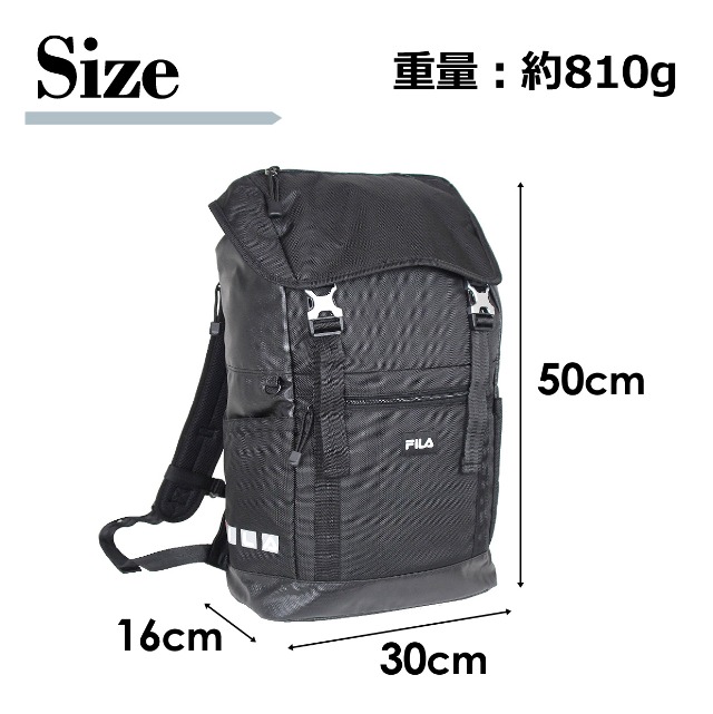 | 【fl-0008】FILA STREET かぶせリュック 素 材|ポリエステル(1680D) サイズ |約 横30×縦50×マチ16cm 重 量|約 810g 仕 様|[外側] ・フロントファスナーポケット×1 ・上部ファスナーポケット×1 ・両サイドにオープンポケット ・メイン直結背面ファスナー ・チェストベルト付き ・ショルダーベルト長さ調節可能 [内側] ・ウレタンポケット×1 イメージ|かっこいい シンプル クール ブランド FILA フィラ フラップ かぶせ 撥水加工 黒 クロ ブラック 大容量 軽量 |