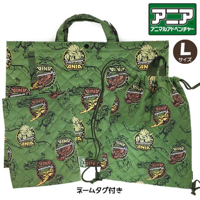 入園 入学 3点セット【qan-1650-qan-1950-qan-2380】アニア 恐竜 巾着キルトシリーズ キルトバッグ セット レッスンバッグL ナップサック シューズケース かっこいい 日本製 子ども キッズ 幼稚園 保育園 こども園 小学生 男の子 男子 キルティング 通園 通学 レッスン