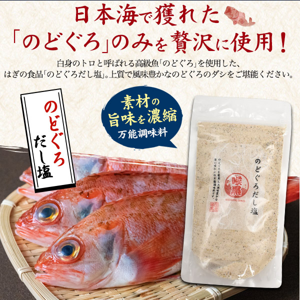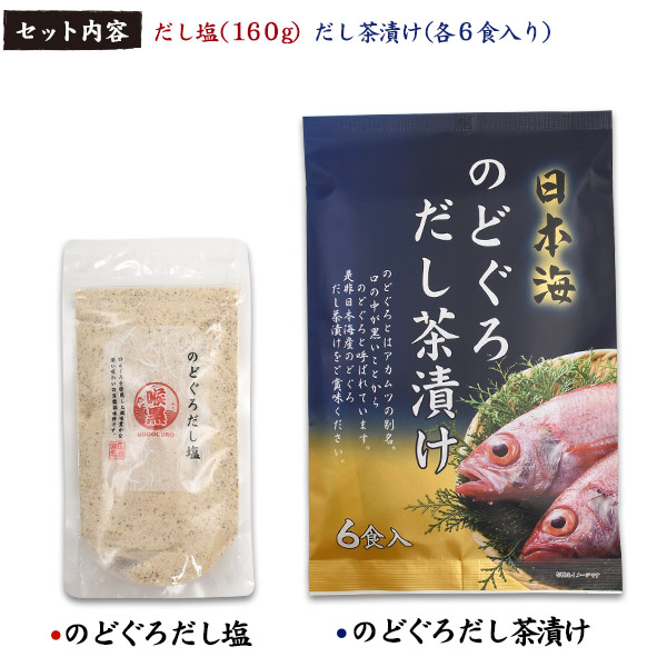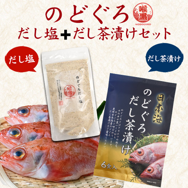 日本海で獲れた「のどぐろ」のみを贅沢に使用した、 はぎの食品「のどぐろだし茶漬け」、 はぎの食品「のどぐろだし塩」セット。