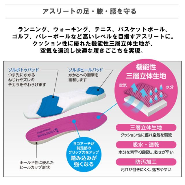 アスリートの足・膝・腰を守り、パフォーマンスUP! ▽どんな時でも快適な履きごこちを実現。 汗や水分を素早く吸収、そして乾きが早い。 クッション性に優れており、また空気を還流し、 汚れが付きにくく、たとえ付いたとしても落ちやすい。 様々なスポーツで高いレベルを目指すアスリートにピッタリ。 |