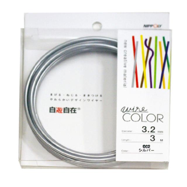 カラー:シルバー<br> サイズ:3.2φ×3m巻<br>◆商品名:NIPPOLY 自遊自在 wire COLOR 3.2φ×3m巻 シルバー<br>まげる・ねじる・まきつける やわらかいデザインワイヤー