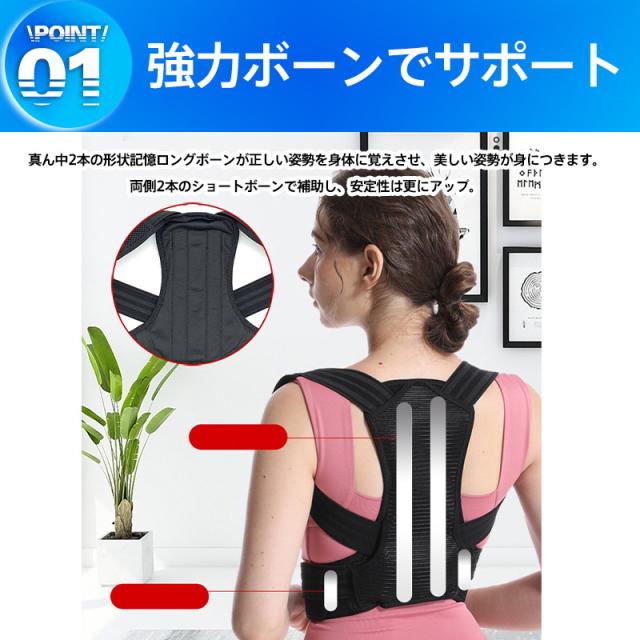 ダブルボーンでガッチリ美姿勢サポーター。装着かんたん、薄くて軽く、姿勢を良くするグッズです。