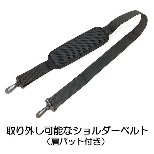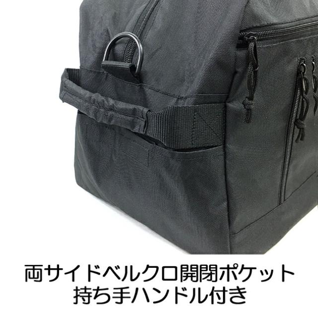 | 仕 様 | | | フロントファスナーポケット フロント縦ファスナーポケット 両サイドベルクロ開閉ポケット 両サイド持ち手ハンドル付き メイン内ベルクロ開閉吊りポケット付き ショルダーベルト取り外し可能 ショルダーベルト長さ調節可能 底鋲付き 片面縫い付け底板付き | |