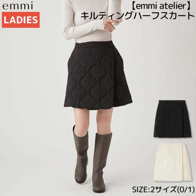 エミ emmi emmi atelier キルティングハーフスカート レディース 秋 冬 ブラック ホワイト カジュアル スカート ハーフスカート キルティング インナーパンツ付き 13WFS234048