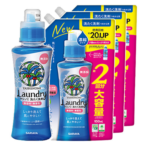 | 商品名 | ヤシノミ洗剤 洗たく洗剤 濃縮タイプ 本体+詰替用 大容量 セット YASHINOMI Laundry |