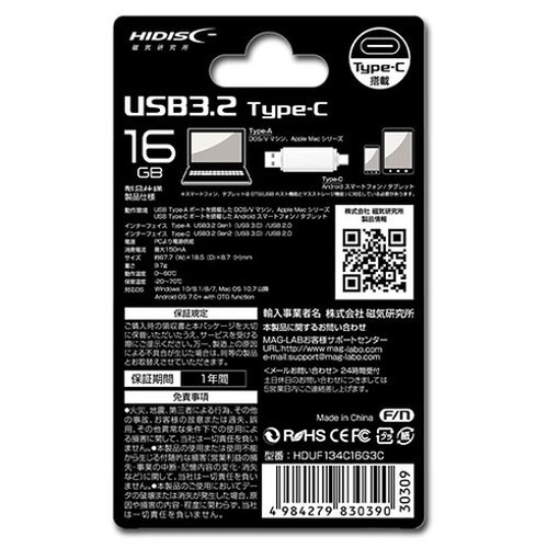 【5個セット】 HIDISC USB3.2 Gen2 Type-C &Type-A搭載 フラッシュドライブ 16GB キャップ式 HDUF134C16G3CX5(代引不可)【送料無料】