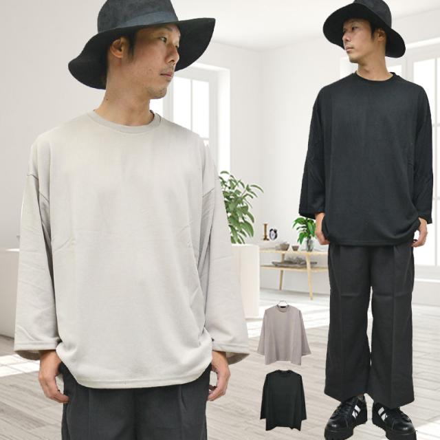 【閉店セール】メンズ カットソー メンズ 長袖 半端丈 Tシャツ tシャツ クルーネック rv7520 BIGシルエット ドロップショルダー ワイドスリーブ カジュアル ストリート 大きいサイズ 無地 インナー 大きめ 大きいサイズ ゆったり ユニセックス