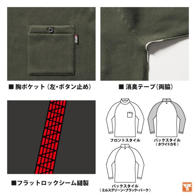4093 バートル モックネックロングTシャツ 秋冬 おすすめ 工事現場 建設業 農作業 釣り アウトドア 自転車 バイク スポーツ ゴルフ ホワイト グレー グリーン ブラック 迷彩