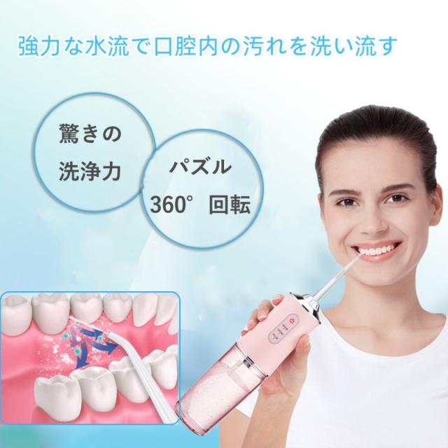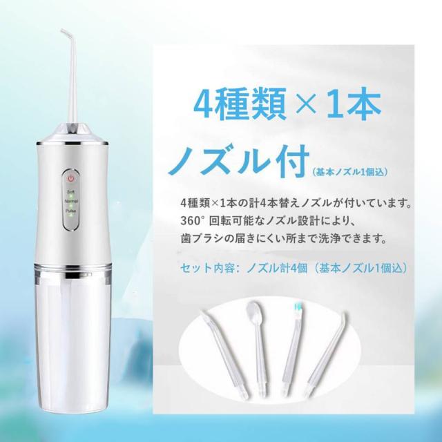 【替えノズル4本付き】口腔洗浄器 口腔洗浄機 ジェット 口腔洗浄 フロス 歯間 歯石ジェット洗浄 USB充電式 220ml 3つモード調節可能