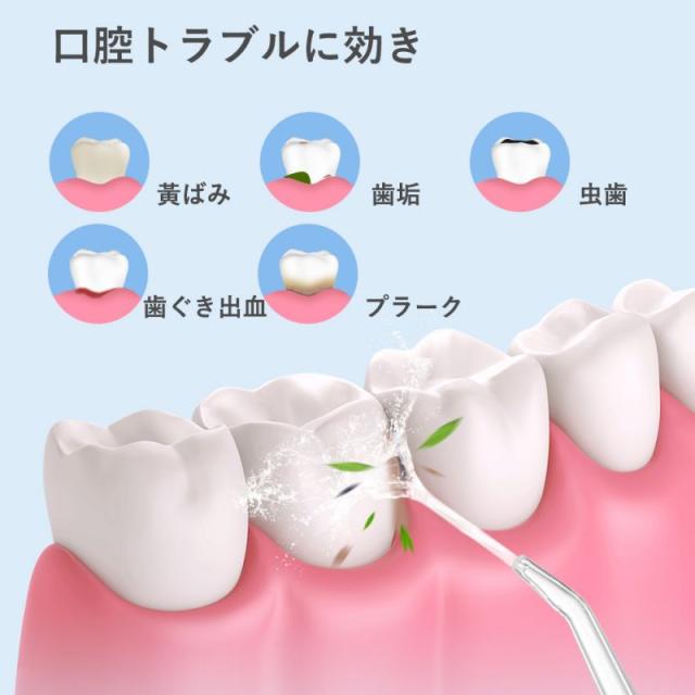 【口腔をキレイに】細いノズル先から放たれる水の水圧で歯ブラシやフロスだけでは取り切れない汚れを