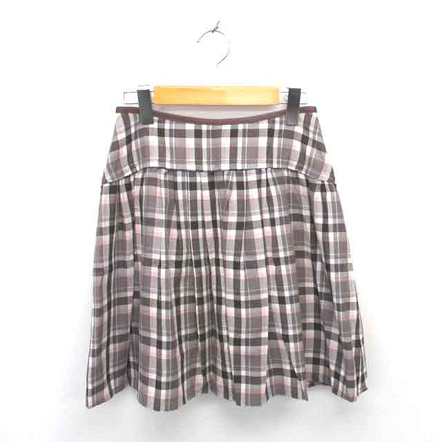 【中古】キスミス Xmiss フレア スカート チェック ミニ 薄手 35 ブラウン ピンク 茶 /TT4 レディース