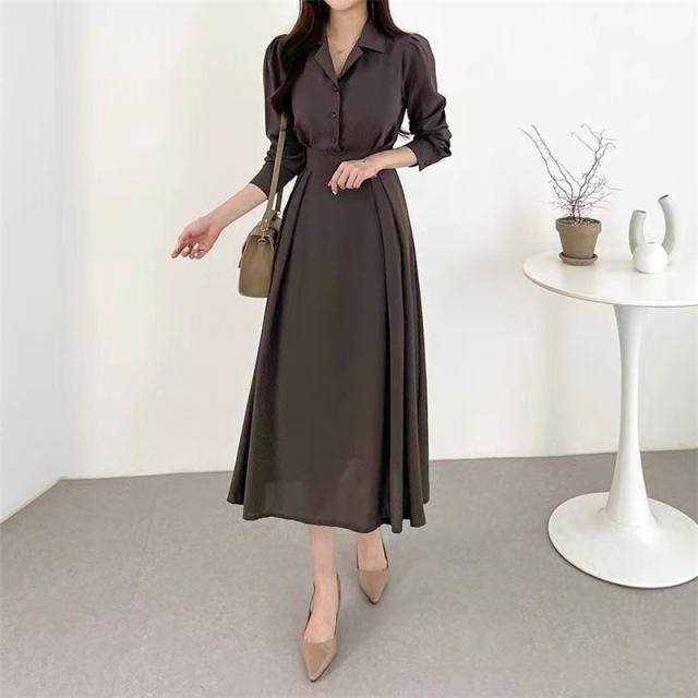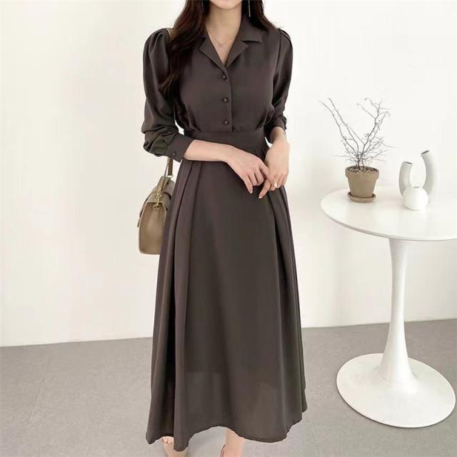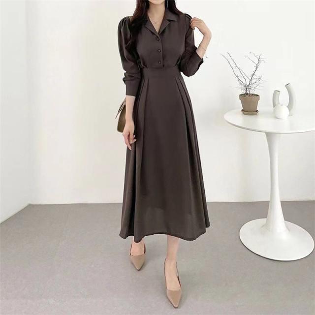 【水曜日まで!10%クーポン配布中】 ワンピース レディース 秋 冬 マキシワンピース パフスリーブ 秋コーデ シャツワンピース 長袖 ロングワンピース ママワンピース
