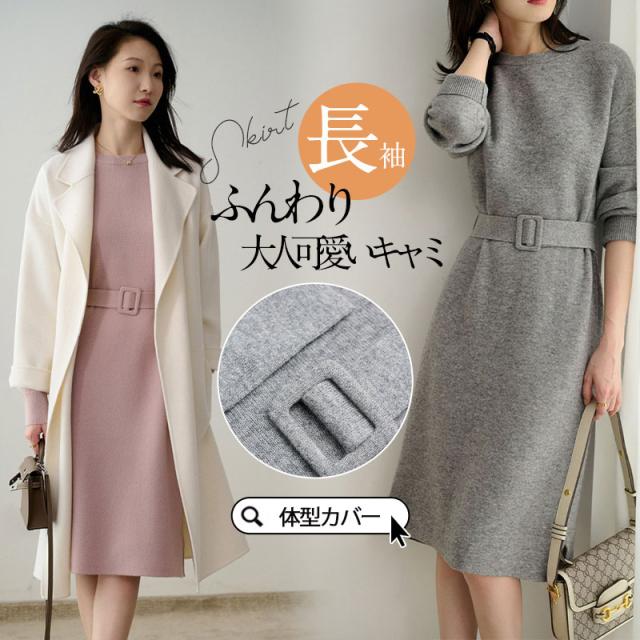 ワンピース レディース 春 秋 長袖 スカート 秋冬 通勤着 可愛い 秋服 体型カバー 20代 30代 40代 50代 アウター トップス ロング丈 ゆったり 体型カバー 秋冬 暖かい セーター 無地 秋ワンピース 春ワンピース 卒業式 面接 おしゃれ カジュアル OL 日常着 ママコーデ