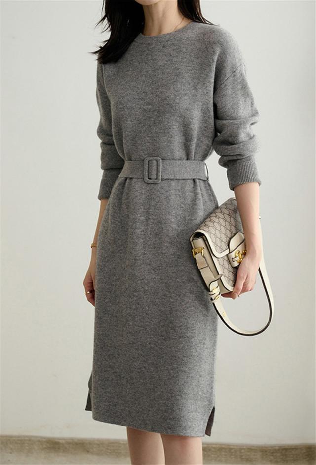 【水曜日まで!10%クーポン配布中】 ワンピース レディース 秋 冬 ママワンピース 膝丈 ひざ丈 秋コーデ 長袖 セーター 入学式 卒業式 卒園式 結婚式 50代 4